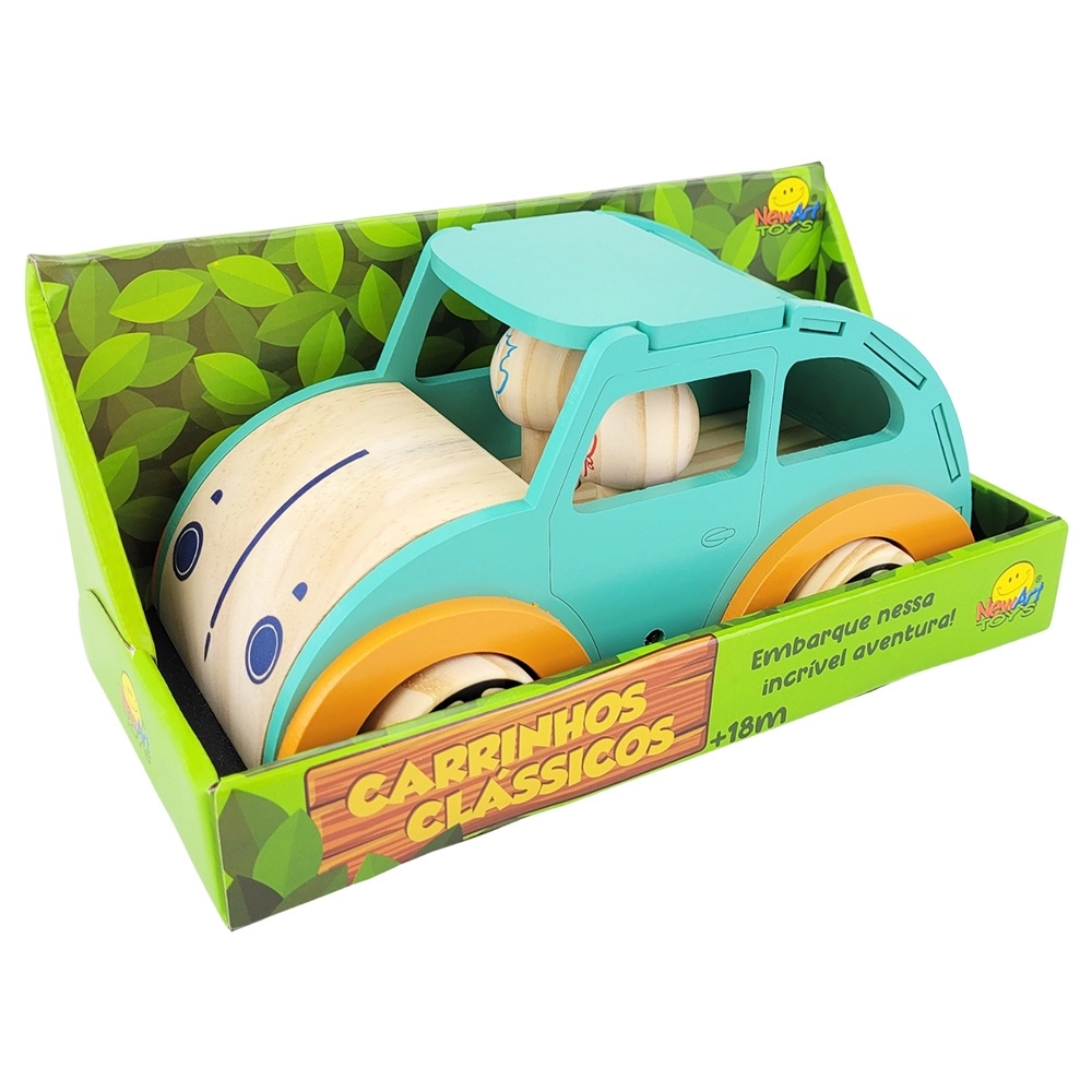 Contém: 1 Carrinho Fusca de madeira e 2 passageiros móveis feitos de madeira